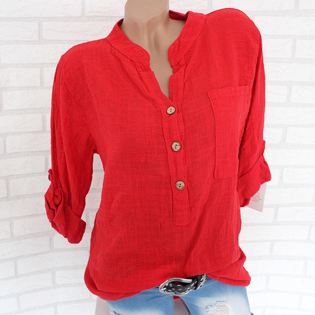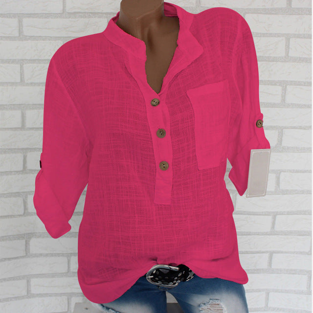 Style1: Womens Cotton Linen Stand Collar Shirt Clothing